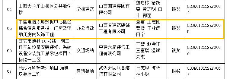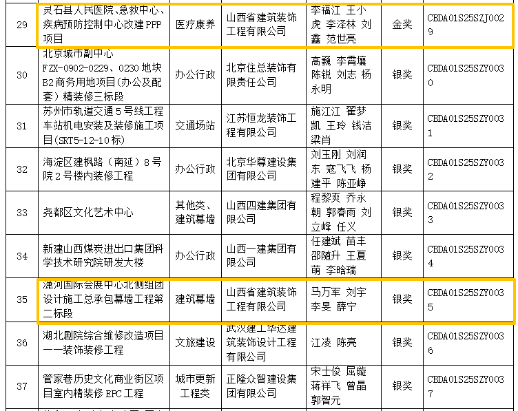 潇河国际会议中心精装修工程项目(四标段)荣膺山西省唯一特等奖;灵石县人民医院、急救中心、疾病预防控制中心改建PPP项目获评金奖;潇河国际会展中心北侧组团设计施工总承包幕墙工程第二标段、中国电信太原数据中心园区综合信息服务楼及辅助用房内装饰工程双双拿下银奖,用实力彰显山西建筑装饰行业的标杆水准。