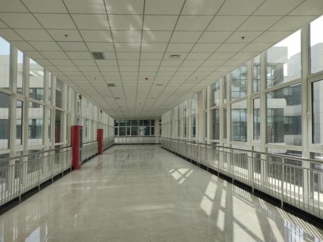 项目秉持精细化施工理念,一层入口大厅采用灰色大理石瓷砖干挂工艺,通过统一排版下料与工厂标准化制作编号,既减少材料浪费,又确保工艺精度;六层走道设备集成带选用欧松板制作,将密集管线与末端设备集中于同一中心线,让吊顶空间整洁有序;公共卫生间采用一体式洗面台设计,相较传统台盆柜更具美观性与耐用性。凭借优质的施工质量,该项目已斩获 “汾水杯” 工程奖与 “三晋杯” A 级评价。