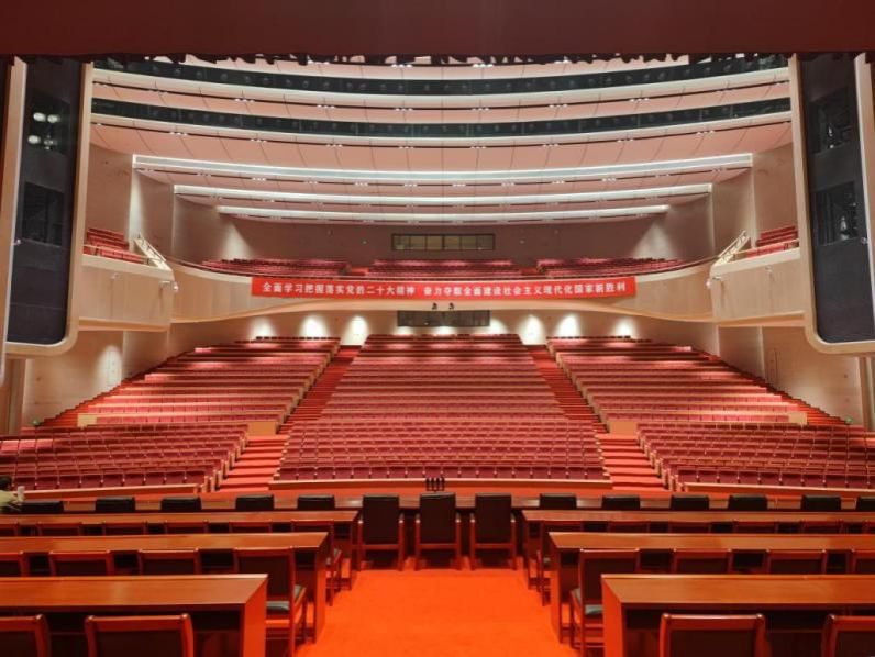作为山西省规模最大、标准最高、功能最优的现代会议中心,潇河国际会议中心是潇河新城地标性建筑,更是山西中部城市群发展 “南引擎” 的重要支撑,总建筑面积约 10.58 万㎡,可满足大型政务与商务会议核心需求。本次获奖的四标段为会议中心报告厅,同时作为省 “两会” 主会场,设 1859 个座位(主席台 169 座、池座 1089 座、楼座 601 座),装修面积达 2133.23㎡。